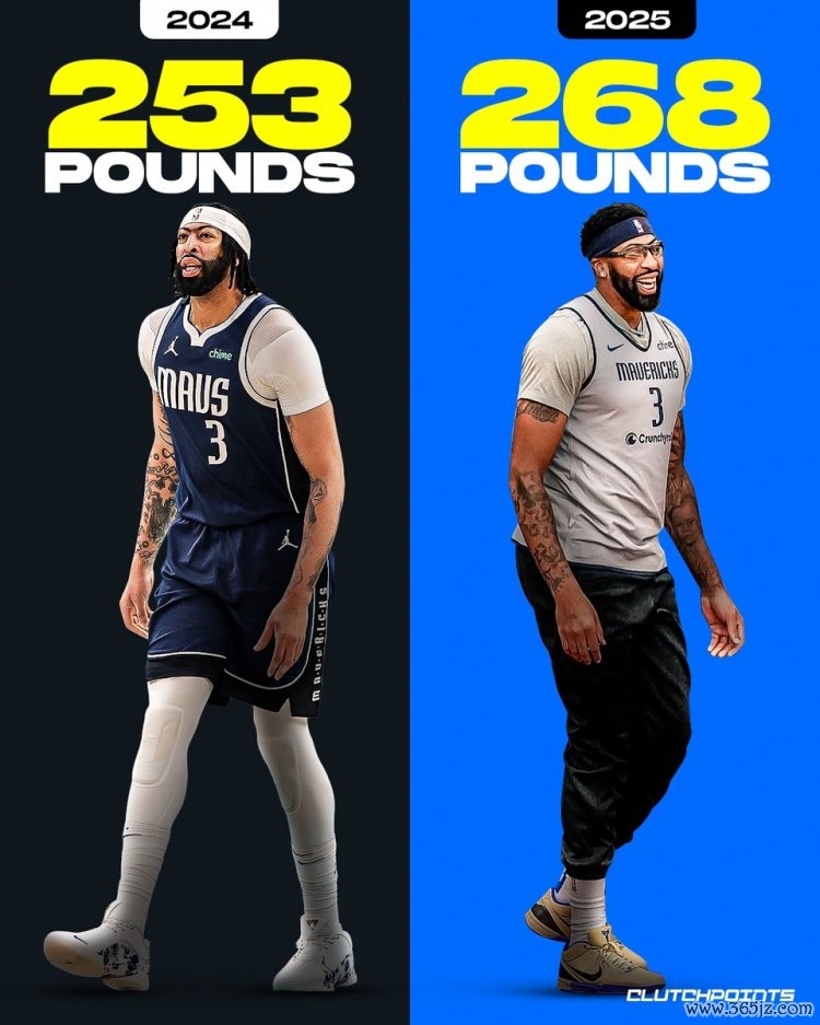 10月2日讯 据美媒ClutchPoints报道,独行侠球星安东尼-戴维斯自上赛季以来体重增加了15磅(约6.8公斤)。