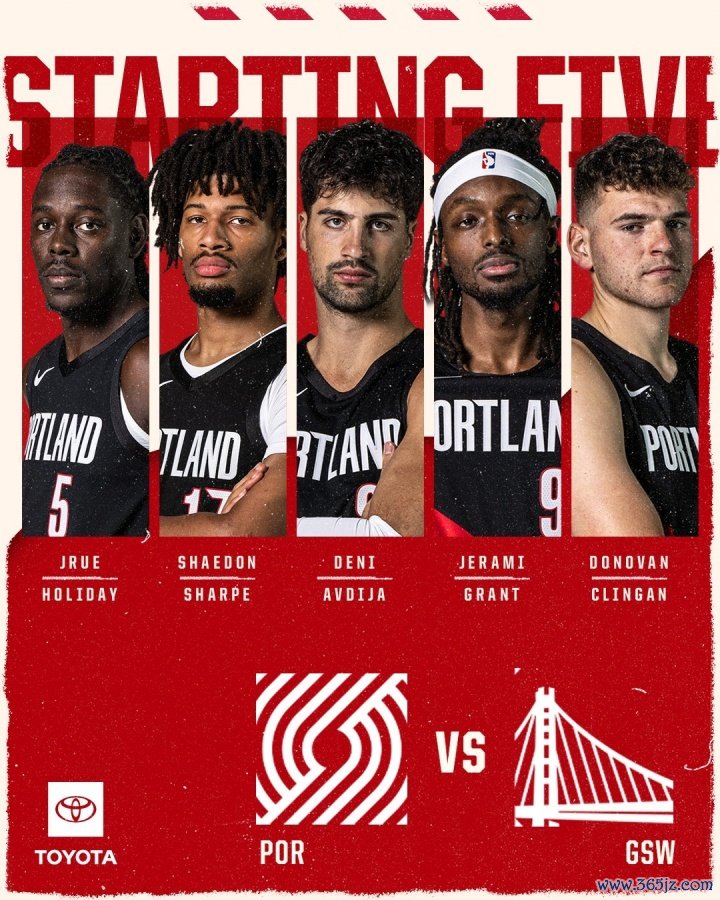 赛前开拓者出具杆位:霍勒迪+夏普+阿夫迪亚+格兰特+克林根。