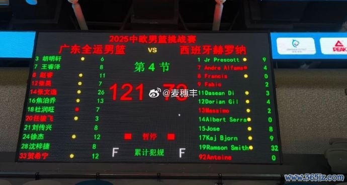 10月21日讯 赛前热身 赛,广东全运男篮以121比73击败西班牙赫罗纳男篮。