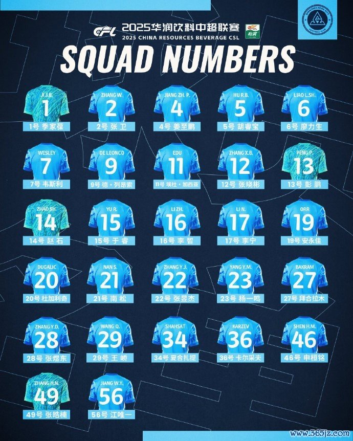 后场球员:2-张卫,4-姜至鹏,5-胡睿宝,15于睿,16-李智,20-杜加利奇, 法甲新闻网22-张昱杰, 足球快讯23-杨一鸣,极限运动视界29-王峤,无插件直播46-申桓铭中场球员:6-廖力生,11-埃杜·加西亚,12-张晓彬,17-李宁,21-南松,28-张煜东,36-卡尔采夫,56-江唯一