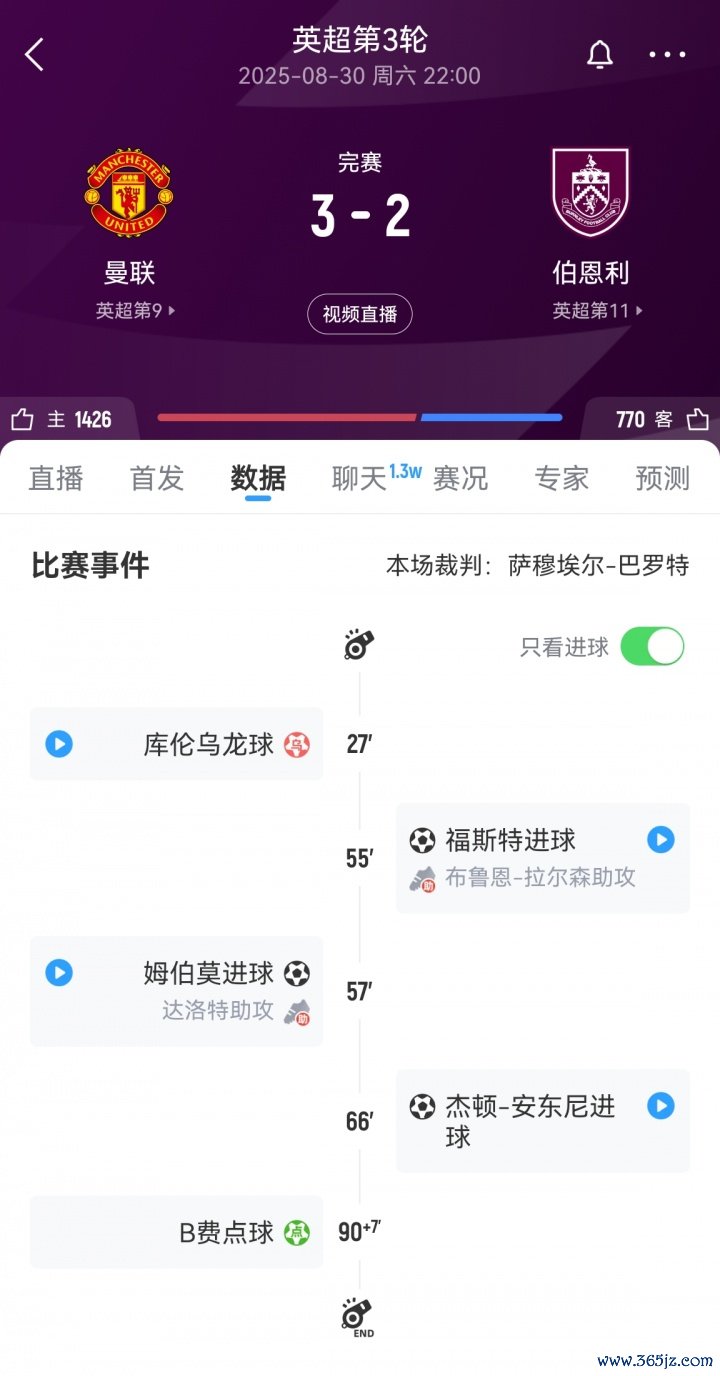 论剧情还得看曼联!曼联两度领跑 被升班马追平 B费补时点射救赎!
