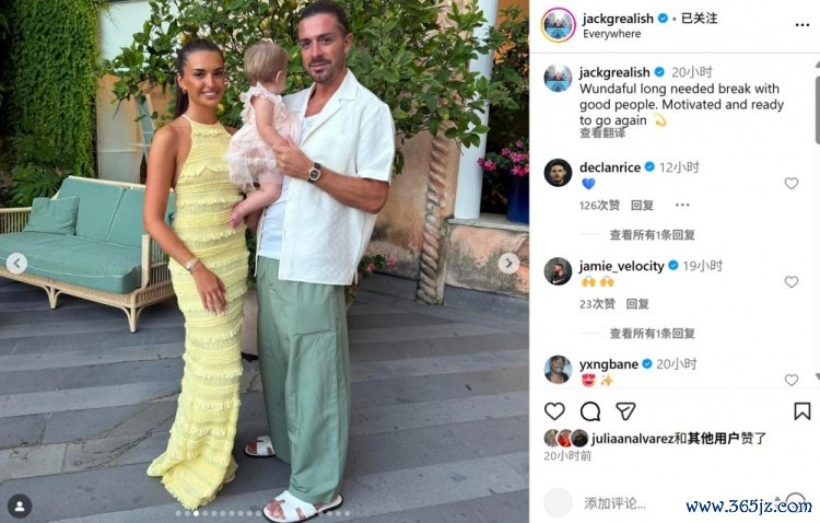 7月26日讯 曼城球星格拉利什在个人社媒晒出多张与家人、朋友在假期度假照片。