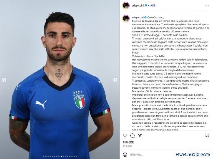 “今天对我来说不是一个普通的日子。今天我将结束一个标志着我一生的篇章:古代足球 。”皮奇尼在他的Instagram账号上写道。在他宣布退役后不久,极限运动视界瓦伦西亚回应道:“你是我们的一员, 法甲新闻网祝你在新的阶段一切顺利。”