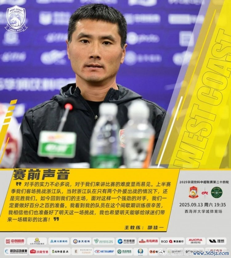 9月12日讯 中超第24轮,青岛西海岸主场作战 对阵浙江队。赛前,西海岸主帅邵佳一和后场球员里切利出席了新闻发布会。