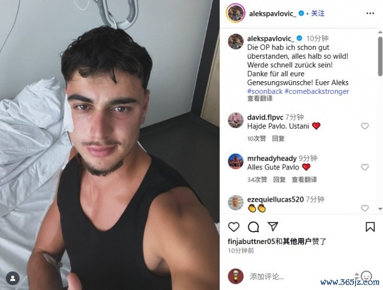帕夫洛维奇写道:“手术很顺利,没想象中可怕!我会很快回归!感谢所有人的复健 祝福!”
