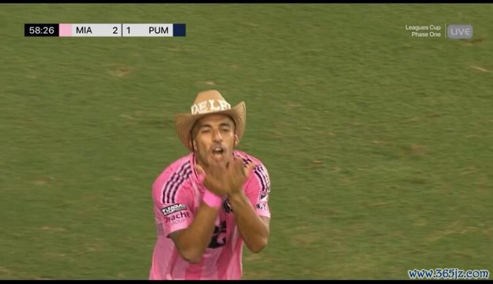 08月07日讯 联盟杯小组赛B组第3轮,迈阿密国际3-1击败墨西哥美洲狮,本场赛事 苏亚雷斯2传1射独造3球破个人9场球荒,有趣的是他还两次上演“戴帽”庆祝。
