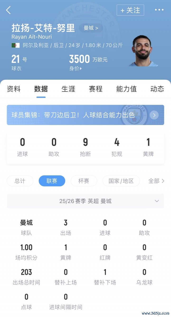 努里今夏3680万欧从狼队转会曼城, 足球快讯在本赛季前三轮职业联赛 中,努里全部杆位,是瓜迪奥拉首选的左后场球员。