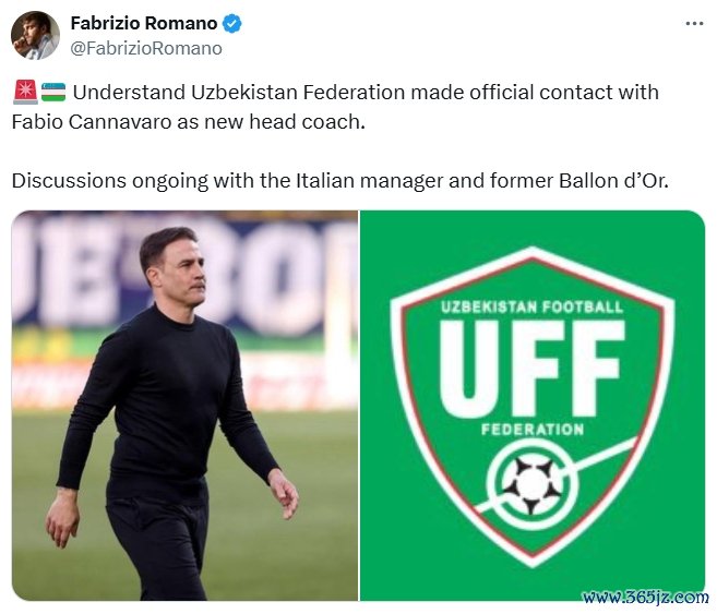 罗马诺获悉,乌兹别克斯坦足协已经正式接触了卡纳瓦罗, 法甲新闻网讨论其执教乌兹别克斯坦国家队的事宜, 足球快讯直播平台目前双方的谈判正在进行。