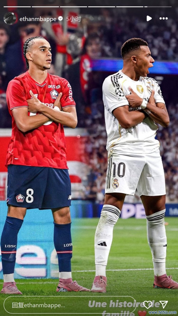 伊桑-姆巴佩得分 后做出哥哥标志性的庆祝动作, 足球快讯足球直播他在社交媒体上晒出对比照片,极限运动视界配文:“我们一家的故事。”