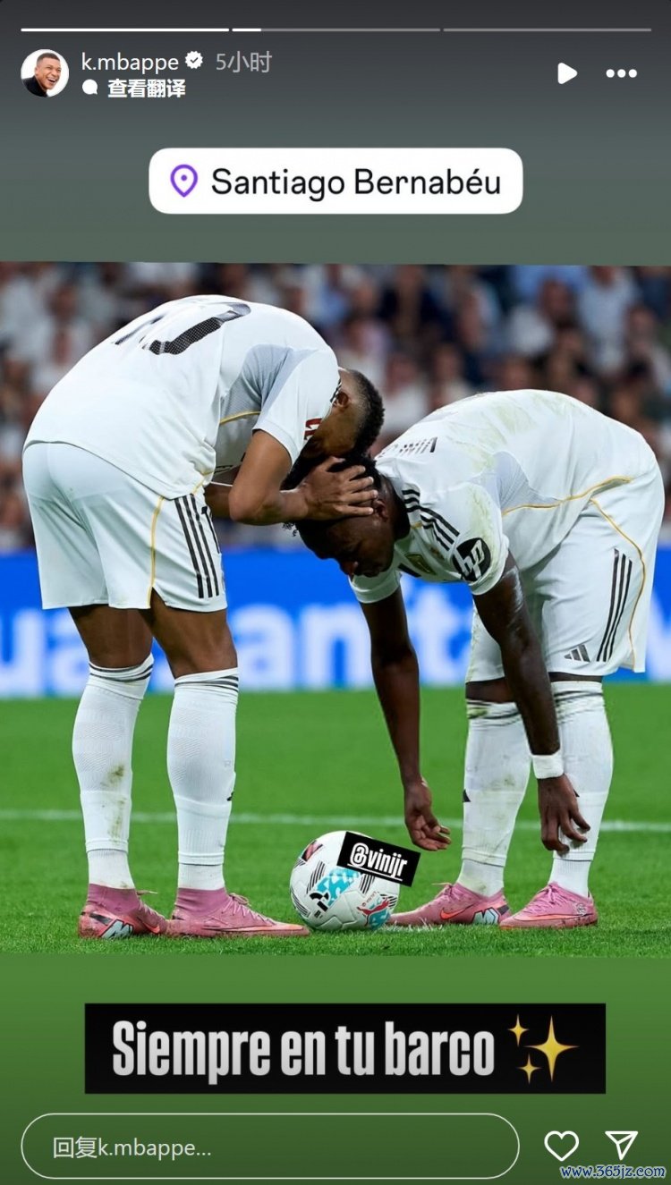 姆巴佩社媒晒出与维尼修斯的合照2025中超直播平台,配文:“永远与你同在(永远同舟共济)。”
