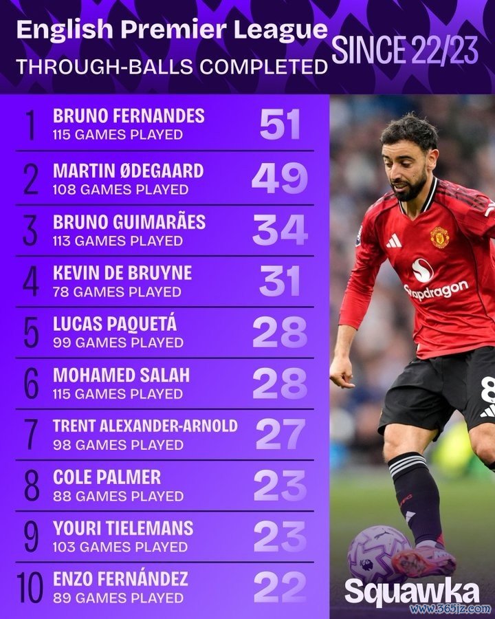 10月13日讯 根据数据机构Squawka的统计,自2022/23赛季以来, 法甲新闻网西甲直播B费在英超职业联赛 中以115场赛事 完成51次成功直塞的数据高居榜首。厄德高以108场赛事 送出49次直塞的成绩紧随其后, 足球快讯位列第二。