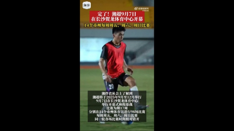长沙发布报道称,湘超将于2025年9月至12月举行,9月7日在长沙贺龙运动场 举行开幕仪式 和揭幕战。赛事 为期17周,分别在14个市州进行98场赛事 , 法甲新闻网每周周五、周六、周日赛事 , 足球快讯同一轮各场赛事 时间相对错开。